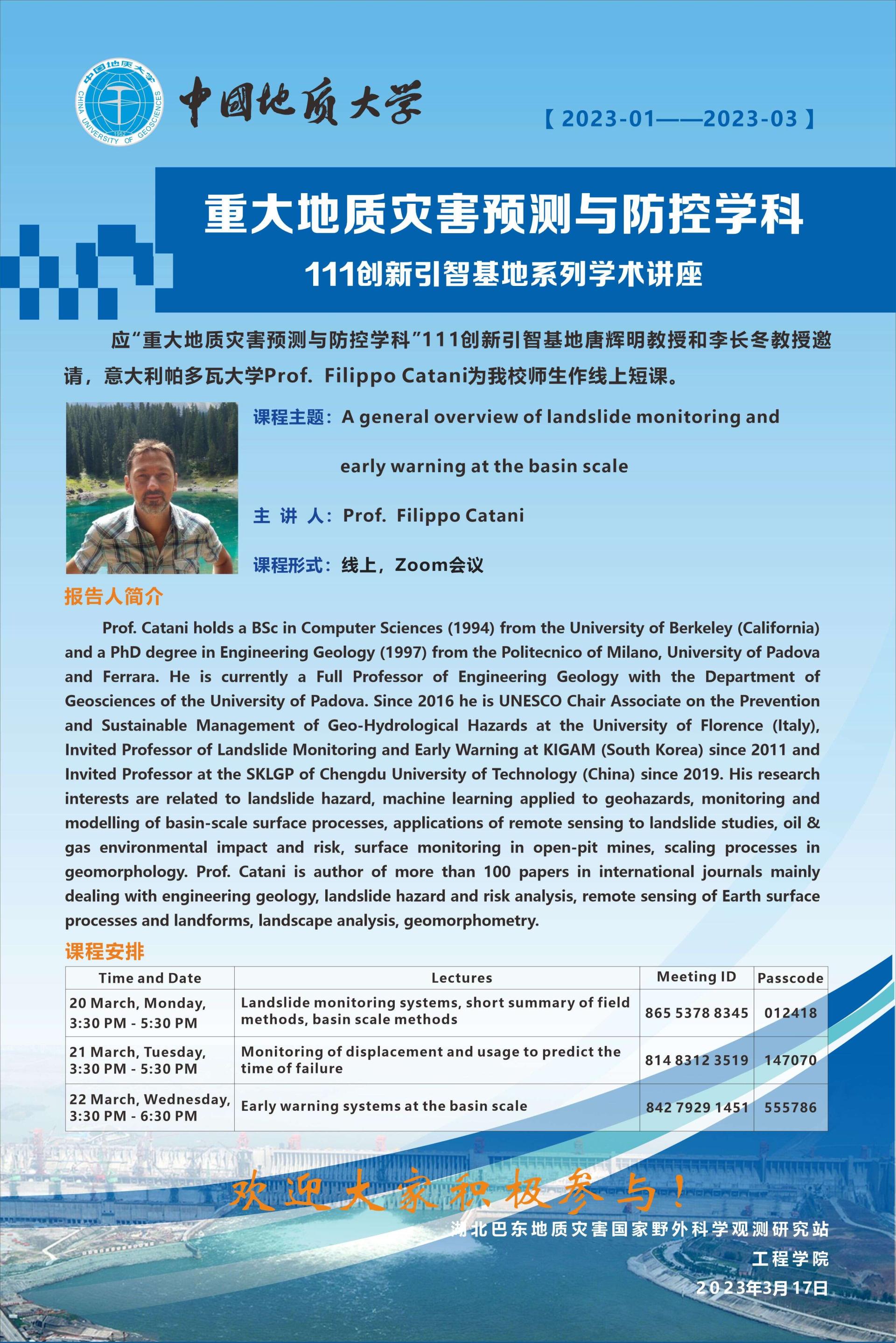 重大地质灾害预测与防控学科---111创新引智基地系列学术讲座2023-1-3期