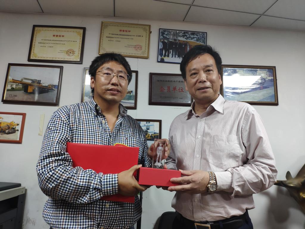 11月23日,工程公司党委书记陈飞一行前往深圳市钻通工程机械股份有限公司,看望“徐亮助学金”捐赠者徐亮员工。