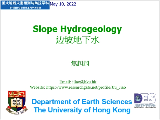 (通讯员 周佳庆)2022年5月10日上午,应公司唐辉明教授和周佳庆特任教授邀请,香港大学焦赳赳教授应邀作客2022年度第4期“重大地质灾害预测与防控学科”111创新引智基地学术讲座。讲座采用线上线下相结合的方式,讲座由李长冬教授主持,唐辉明教授、胡新丽教授、吴益平教授、张峰特任教授、周佳庆特任教授、叶阳特任教授等以及香港大学、香港科技大学、武汉大学、南方科技大学、长安大学、重庆大学、成都理工大学等多个单位180余名师生参加了本次讲座活动。