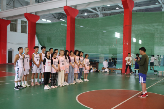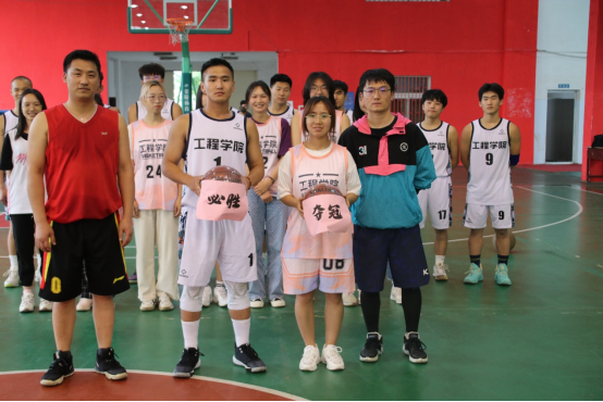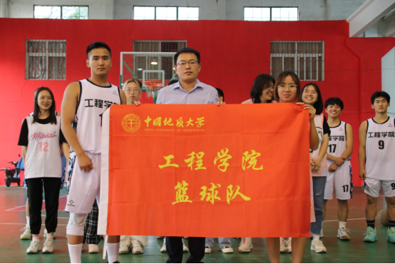 校团委挂职副书记、安全系教工党支部书记、工程教工篮球队队长周克清为篮球队授旗,新校区建设指挥部副处长、2004级土木工程毕业生陈胜和太阳集团tcy8722工岩系博后郑罗斌为男队和女队颁球。
