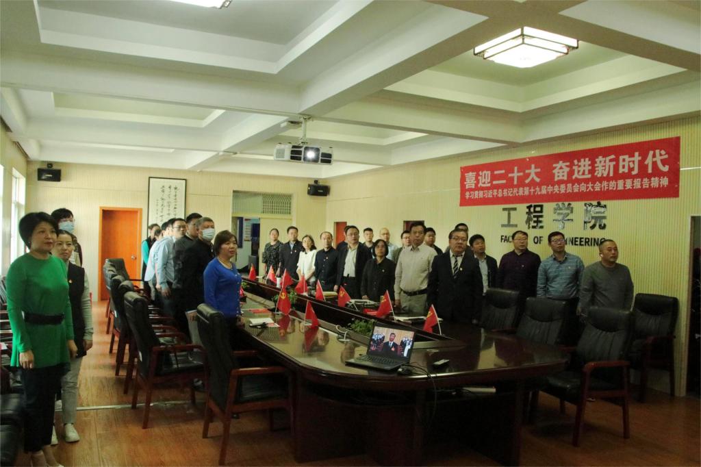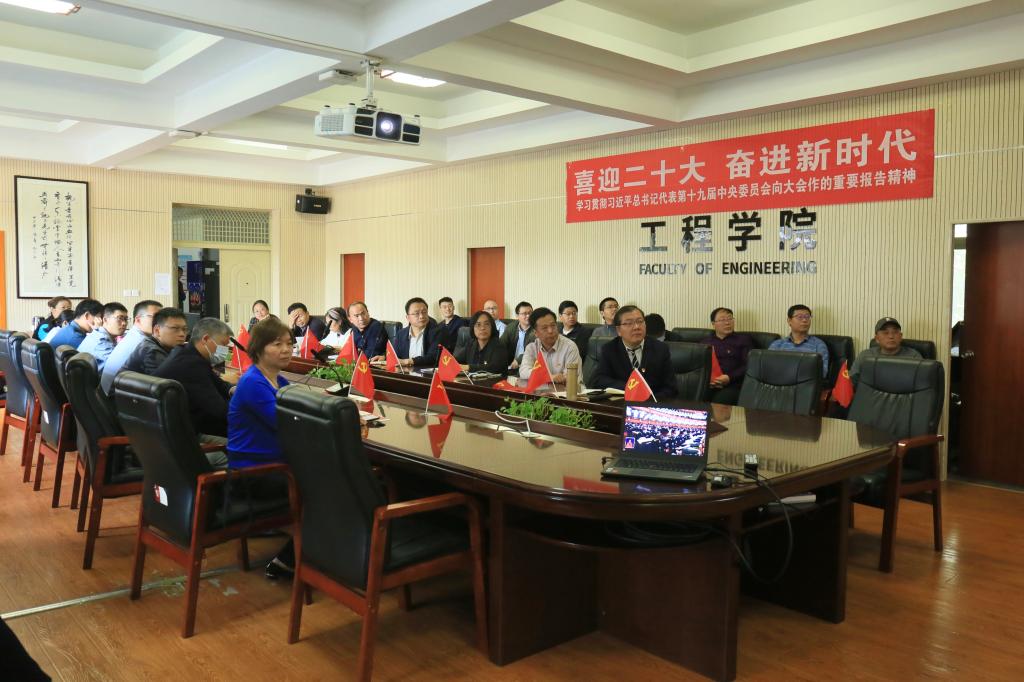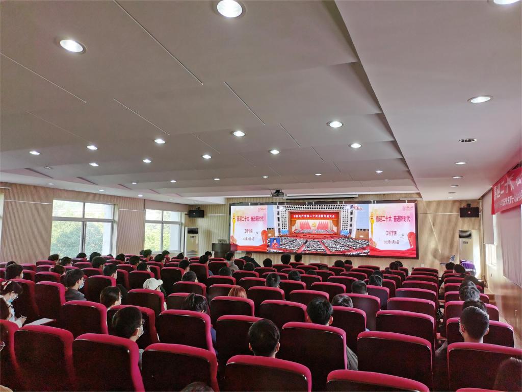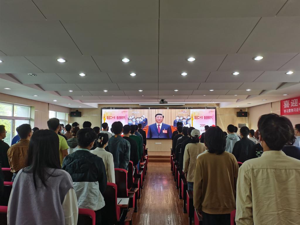 工程公司党委书记李红丽,经理焦玉勇,副经理王亮清、倪晓阳、章广成,公司党委副书记高晓东,各教工党支部书记、主任,院直机关全体工作人员及辅导员在工程楼315集中收看,各系(中心)教工党支部在各系会议室集中收看,员工党支部、团支部代表在工程楼418报告厅集中收看,窦斌副经理及公司代表等在东区教学综合楼A0113集中收看,其他师生在各自宿舍、工作室、会议室等通过电脑、手机收听收看。