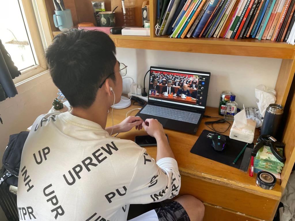 观看大会直播的师生认为,党的十九大以来的5年,以习近平同志为核心的党中央审时度势、守正创新,敢于斗争、善于斗争,团结带领全党全军全国各族人民有效应对严峻复杂的国际形势和接踵而至的巨大风险挑战,以奋发有为的精神把新时代中国特色社会主义不断推向前进,攻克了许多长期没有解决的难题,办成了许多事关长远的大事要事,推动党和国家事业取得举世瞩目的重大成就。