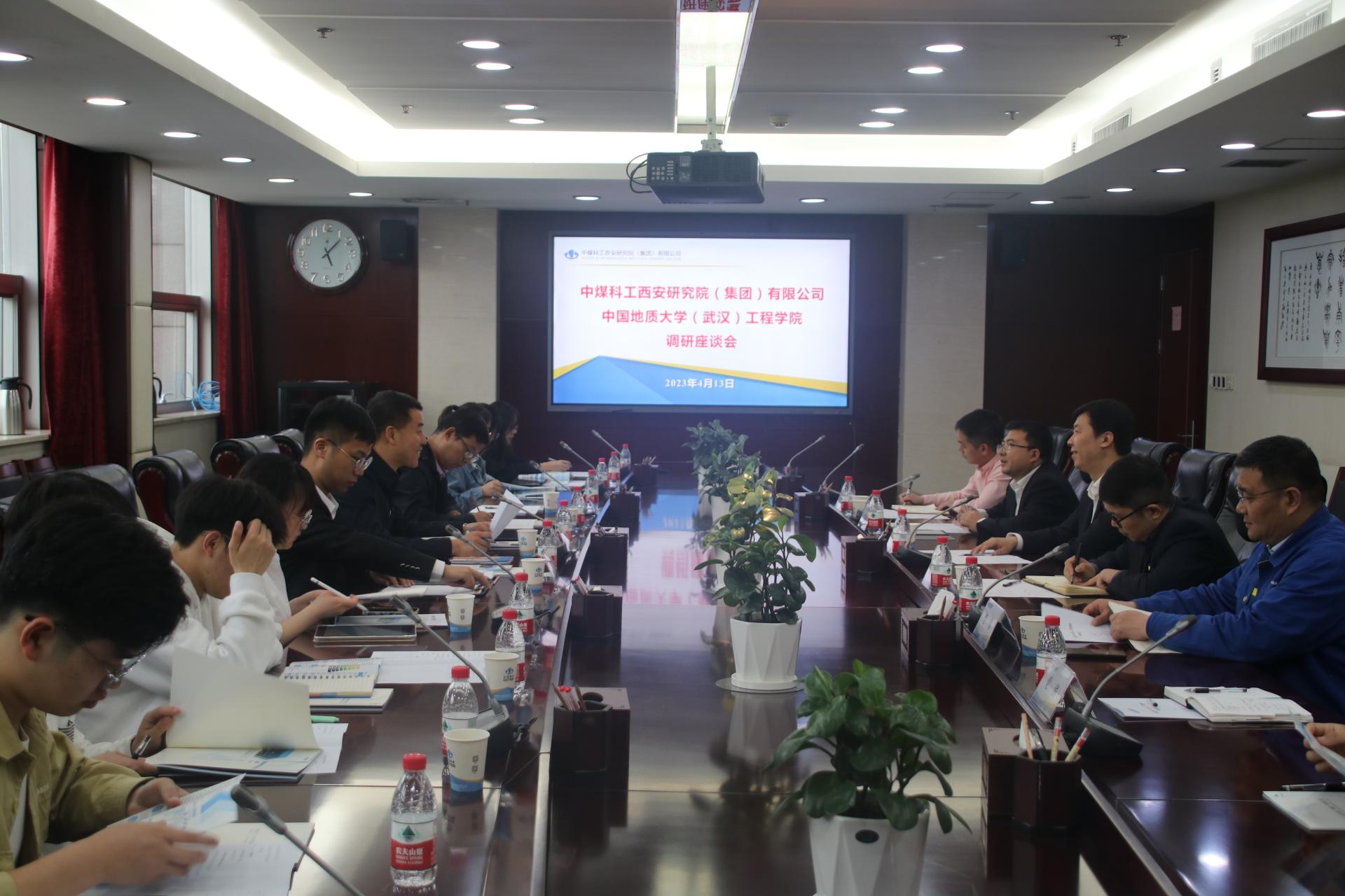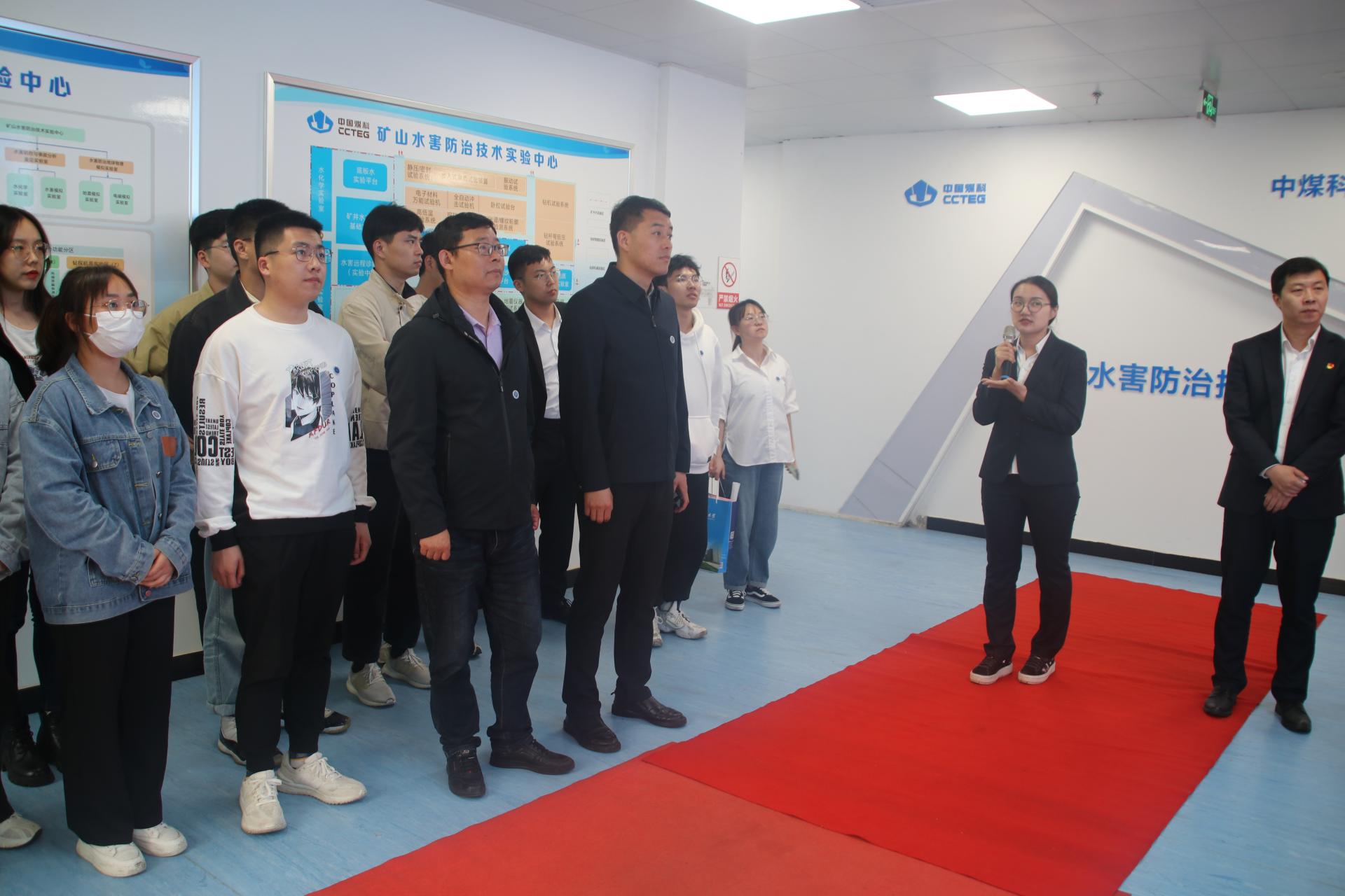 4月13日下午,细雨洗尘,微风清爽,师生们一行来到中煤科工集团西安研究院有限公司(以下简称“西安研究院”)访问调研。西安研究公司党委委员、副总经理王皓、科技创新研究院副经理王晓东、生产管理部主任董萌萌、工程师方俊、生产管理部主管范伟、人力资源部主管党滨陪同参观座谈。