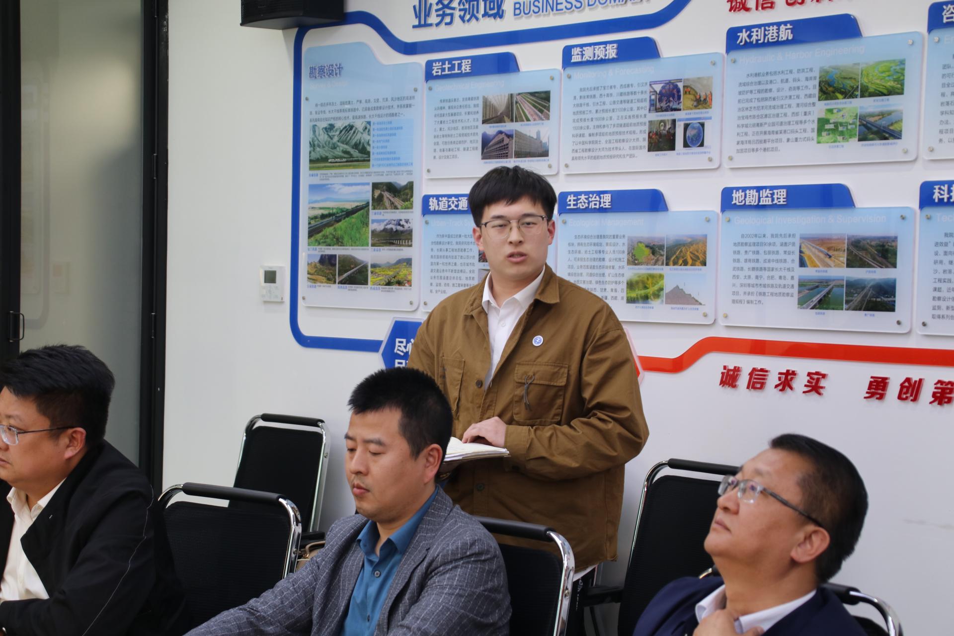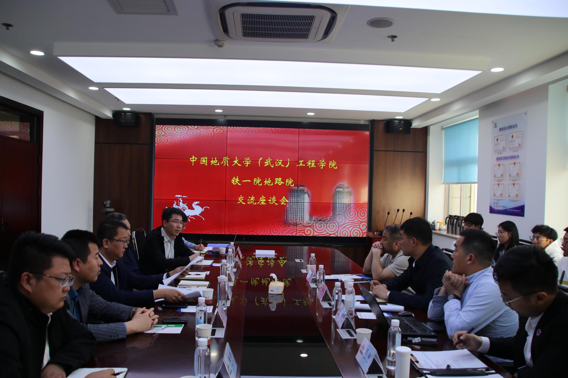 参观院史展览馆后,师生们与铁一院地质路基设计院(简称“地路院”)展开交流座谈。地路公司党委书记、经理郭韫武,总工程师、副经理张文忠,副经理张志亮,副总工程师周福军,地路二所所长黄杰,综合室副主任王飞,勘探所副所长郑亮亮,团委书记罗锋参加座谈。