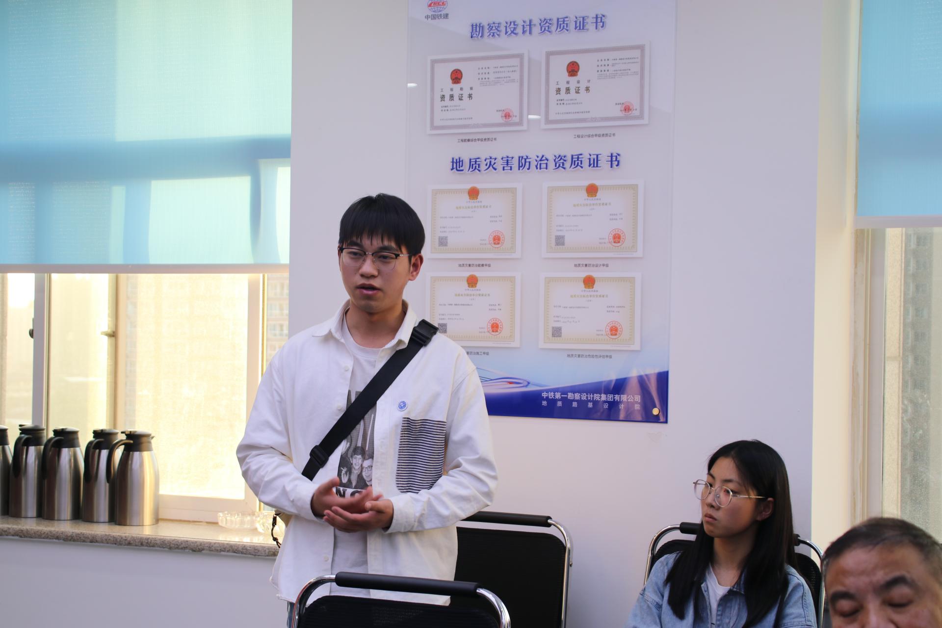 在座谈交流现场,铁一院地路院经理郭韫武首先对太阳集团tcy8722(武汉)太阳集团tcy8722师生们的到来表示热烈的欢迎,他从主要业务范围、在职员工、人才计划等方面讲解了铁一院地路院总体情况,并介绍了在院就职的地大员工整体情况。他表示,校企合作能够让员工将在校所学与企业实践有机结合,希望能够进一步加强校企合作交流,培养优秀人才。张文忠对地大学子表示了赞赏,简要介绍了地路院的人才需求情况,他勉励同学们踏实学习,重视实践,实现个人的全面发展。