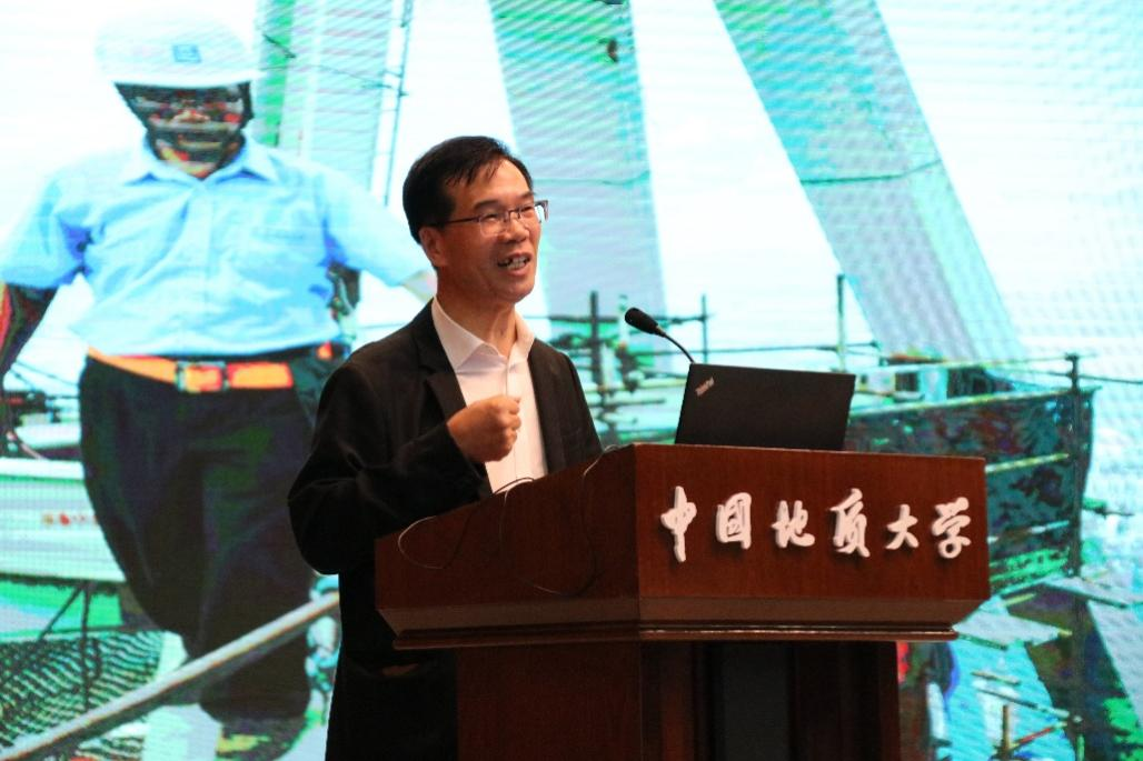 湖北道泽勘测设计院有限公司总工程师谢昭宇先生作为优秀员工代表发言。他以《路虽远,行则将至;事虽难,做则必成》为题,如数家珍地细数自己在地大求学之路上的点点滴滴,详实生动地介绍自己职场奋进之路上的酸甜苦辣,他从学历、注册、职称、创新、创业等五个方面给予学弟学妹们最真诚的建议,强调要锻炼强健体魄,勇敢应对生活挑战;要夯实专业知识,积极应对学业挑战;要参加实践活动,提前做好职场准备。谢员工的分享真诚而有趣,更加激发了同学们探索老员工活的热情。