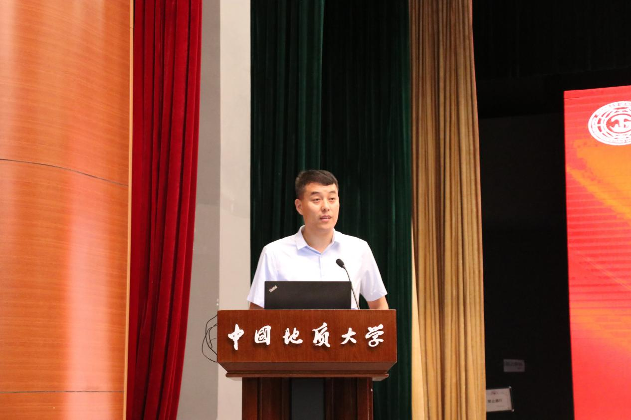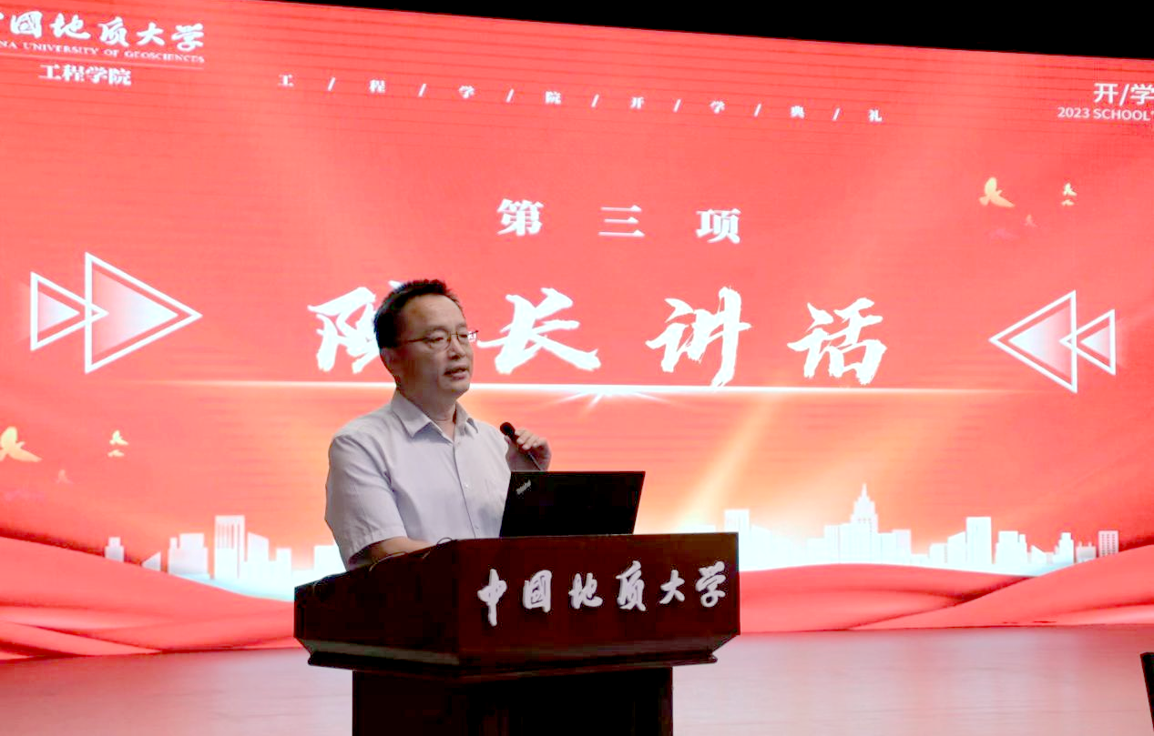 太阳集团tcy8722经理焦玉勇教授讲话。他以“祝贺”“欢迎”“希望”寄语新生,祝贺860位新生加入国家工程行业,欢迎同学们来到太阳集团tcy8722,为公司发展注入新鲜血液、增添奋进力量。他系统全面的向大家介绍了公司的历史沿革、系室设置、团队力量、团队建设、科学研究、国际交流等基本情况,勉励全体新生用习近平新时代中国特色社会主义思想凝心铸魂,用“艰苦朴素,求真务实”的校训精神和“明理尚实、拓新砺行”的院训精神领航前进,跟随公司公司的发展步伐,用好公司公司的发展平台,毅然投身于国家工程建设行业当中,迎难而上、奋勇前行,不负历史、不复时代,为把公司建设成为地质工程与人居安全领域特色鲜明、享誉国际的一流研究型公司不懈努力!