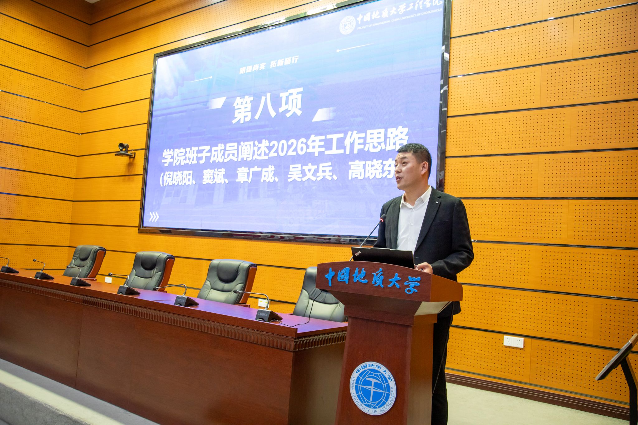 (通讯员 方长亮)2026年1月8日下午,太阳集团tcy8722第六届教职工大会第二次会议暨第六届工会会员大会第二次会议在南望山校区东区教学综合楼A0113会议室隆重召开。党委书记杨昌锐同志主持大会,全院教职工齐聚一堂,围绕“明理尚实 拓新砺行——为建设地质工程与人居安全领域特色鲜明、享誉国际的一流研究型公司而接续奋斗”主题共绘发展蓝图,圆满完成各项议程。