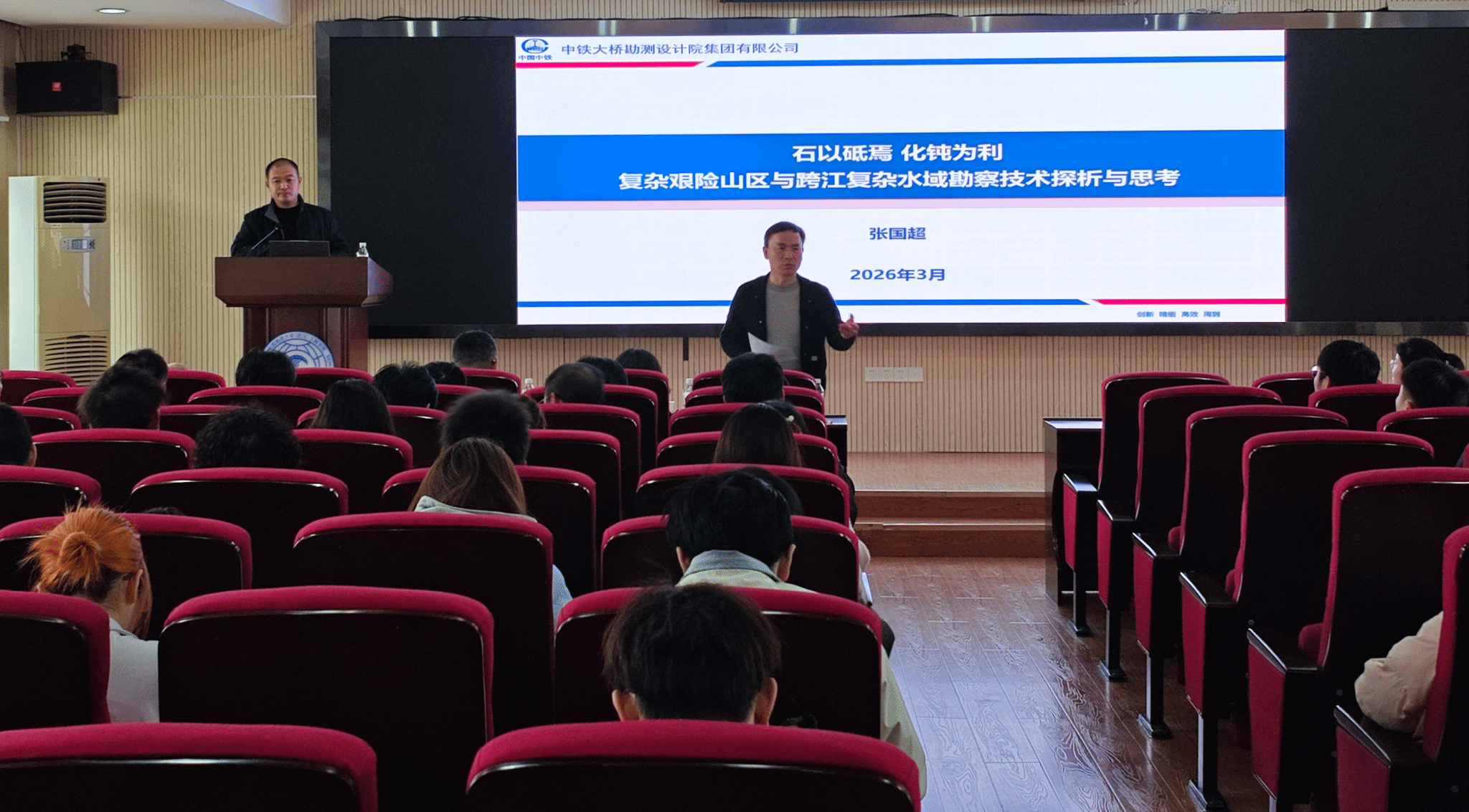 (通讯员 徐楚 黄静)3月24日下午,应胡新丽教授邀请,公司两位优秀毕业生中铁大桥勘测设计院集团有限公司勘察院副经理吴刚正高级工程师、副所长张国超正高级工程师做客工程文化论坛,为师生带来精彩的学术讲座。讲座在工程楼418报告厅举行,由太阳集团tcy8722副经理章广成教授主持,胡新丽教授、段隆臣教授、崔德山教授、郑鸿超特任教授、付茹副教授、徐楚助理研究员等50余名师生聆听了此次报告。