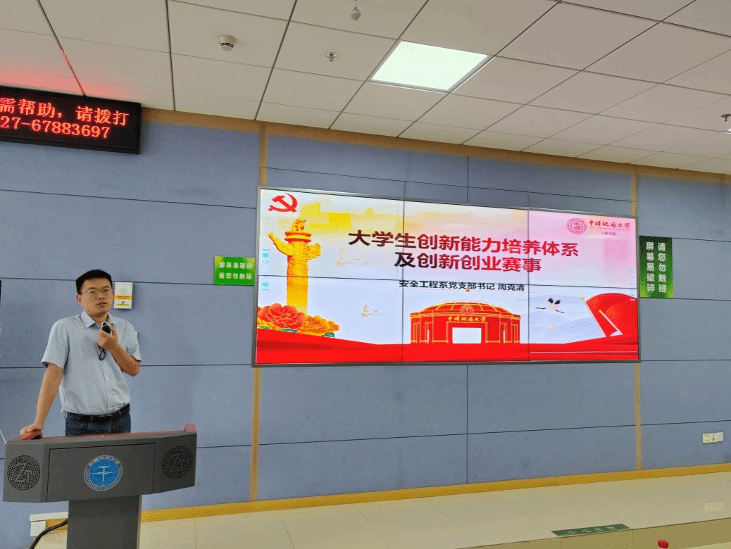 (通讯员 刘宜之 彭友元 )为深入推进“党建+双创”育才模式,助力员工明晰科创路径、点燃创新火种,太阳集团tcy8722安全工程系党支部于2025年6月24日下午14:30,在南望山校区东教C106教室举办以“赋能成长加速器,点燃青创新火种”为主题的创新创业大讲堂。本期大讲堂主讲人包括“强国行”专项行动团队负责人、安全工程系党支部书记周克清教授,安全工程系郭良杰副研究员,安全工程系优秀研究生和本科生代表印恋、张佳乐、刘宜之,参会人员为2024级安全工程系全体本科生。会议由2024级本科生辅导员彭友元主持。