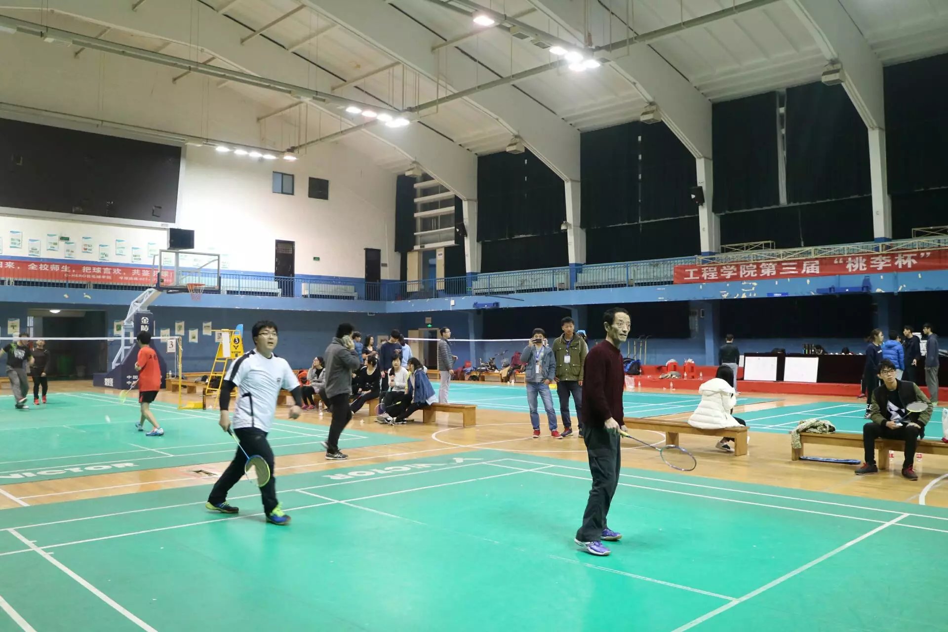 比赛设立了男单、女单、男双、女双、混双五个项目,采用淘汰制进行比赛。在激昂的音乐声中,各队选手摩拳擦掌,现场气氛十分热烈。 比赛过程中,参赛选手们进入紧张振奋的比赛状态,尽情厮杀、挥洒汗水,将自己的水平发挥到极致,精彩的比赛令人目不暇接。