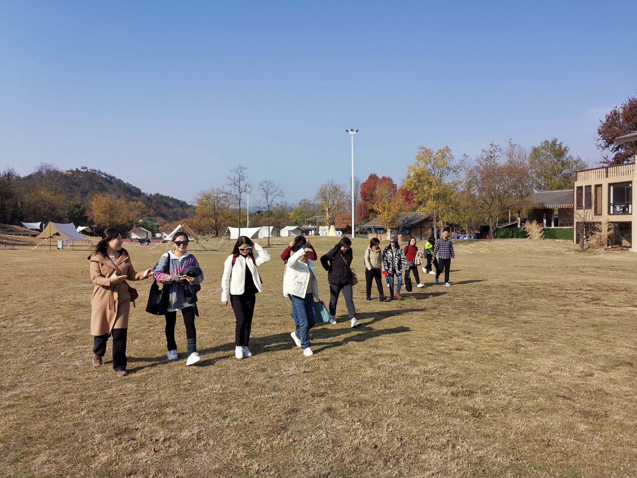 早上8时许,旅游大巴从公司门口出发,大家一路欢声笑语,对此次秋游满怀期待。抵达景区后,全体教职工即在野村谷正门大草坪上合影,留下美好瞬间。